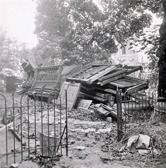 Terug naar Winterswijk, juni 1945. De synagoge aan de Spoorstraat heeft de bezetting overleefd. Wel ligt de inventaris in de tuin, waaronder de zitbanken. Bovendien hebben de Duitsers het gebouw verkocht aan de gemeente die het gebruikt als gymnastieklokaal.