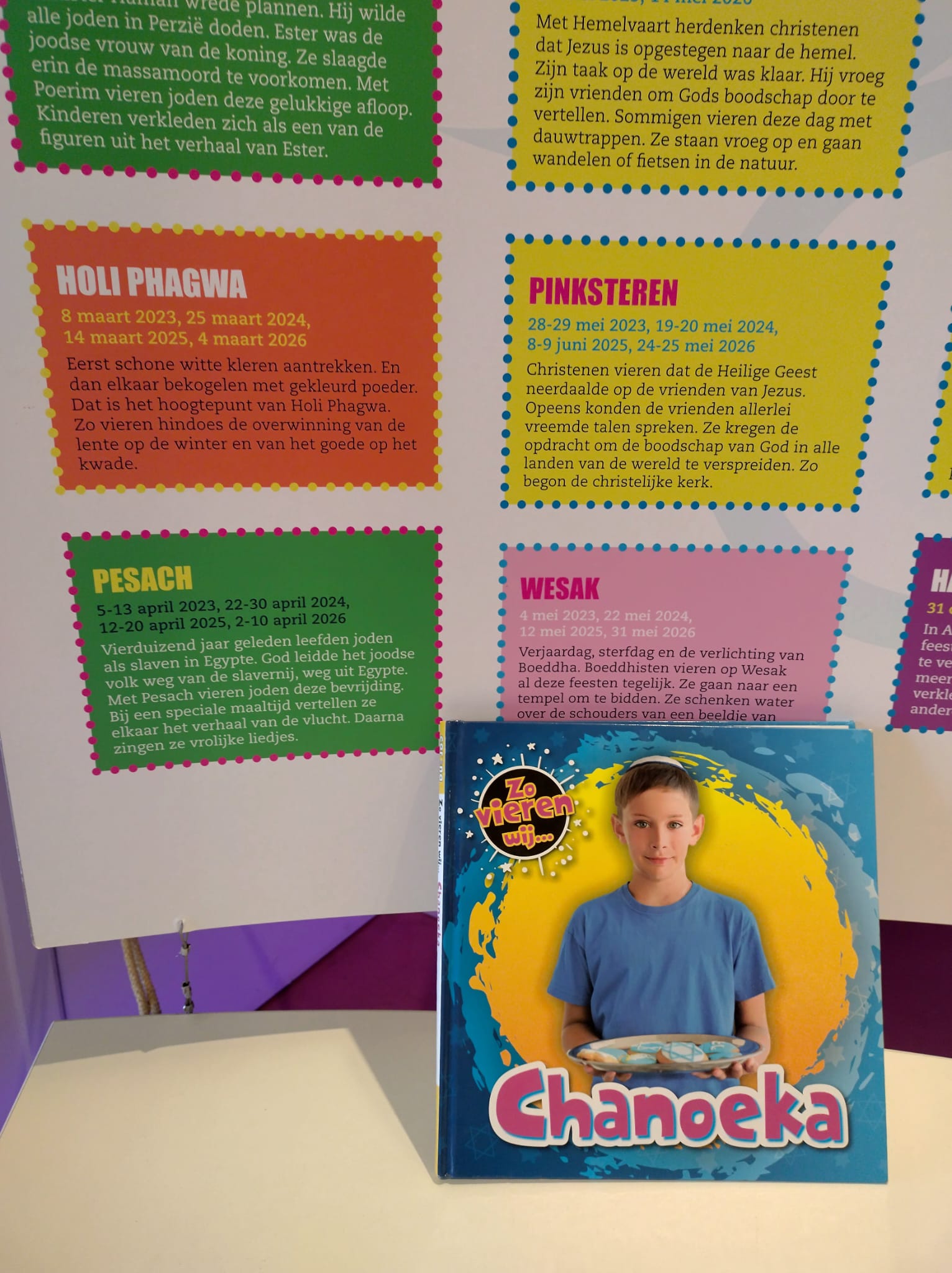 Het was een fijne dag. Niet een keer uitgescholden, hoezeer mijn kleinzoon en ik er ook typisch Joods uitzagen. Maar nog iets onverwachts positiefs: in een van de gebouwen was er voor kinderen een tentoonstelling rondom ‘feest”. Kinderen mochten daar van alles en nog wat knutselen geloof ik. Niets bijzonders. Maar opvallend verheugend was dat ook Joodse Feestdagen als Pesach, Poerim en Chanoeka aanwezig waren.  Aan de juffrouw die deze tentoonstelling beheerde vroeg ik tussen neus en lippen door of zij wellicht tot Christenen voor Israël behoorde of anderzijds Christelijk was. Maar nee dus, ze was niet kerkelijk en van Christenen voor Israël had ze nog nooit gehoord. Waarom ik zo verbaasd was om ook Joodse feesten aan te treffen, ontging haar. Waarom dan niet, was haar opstelling.