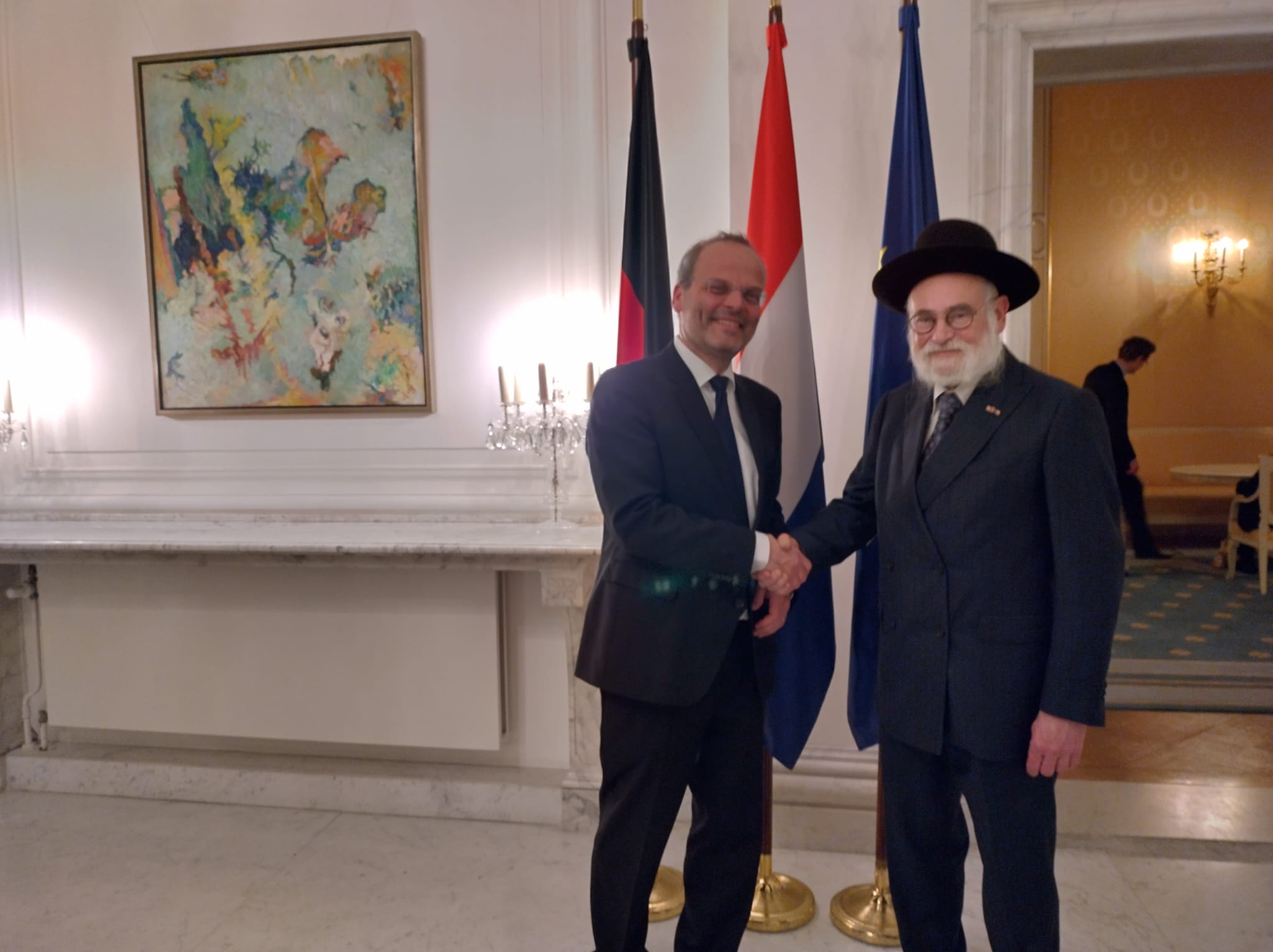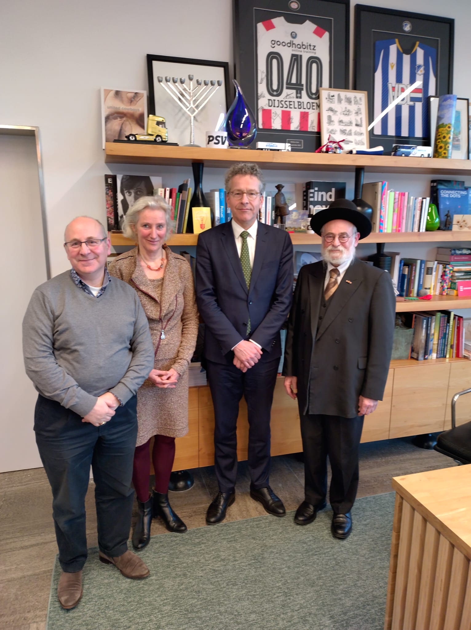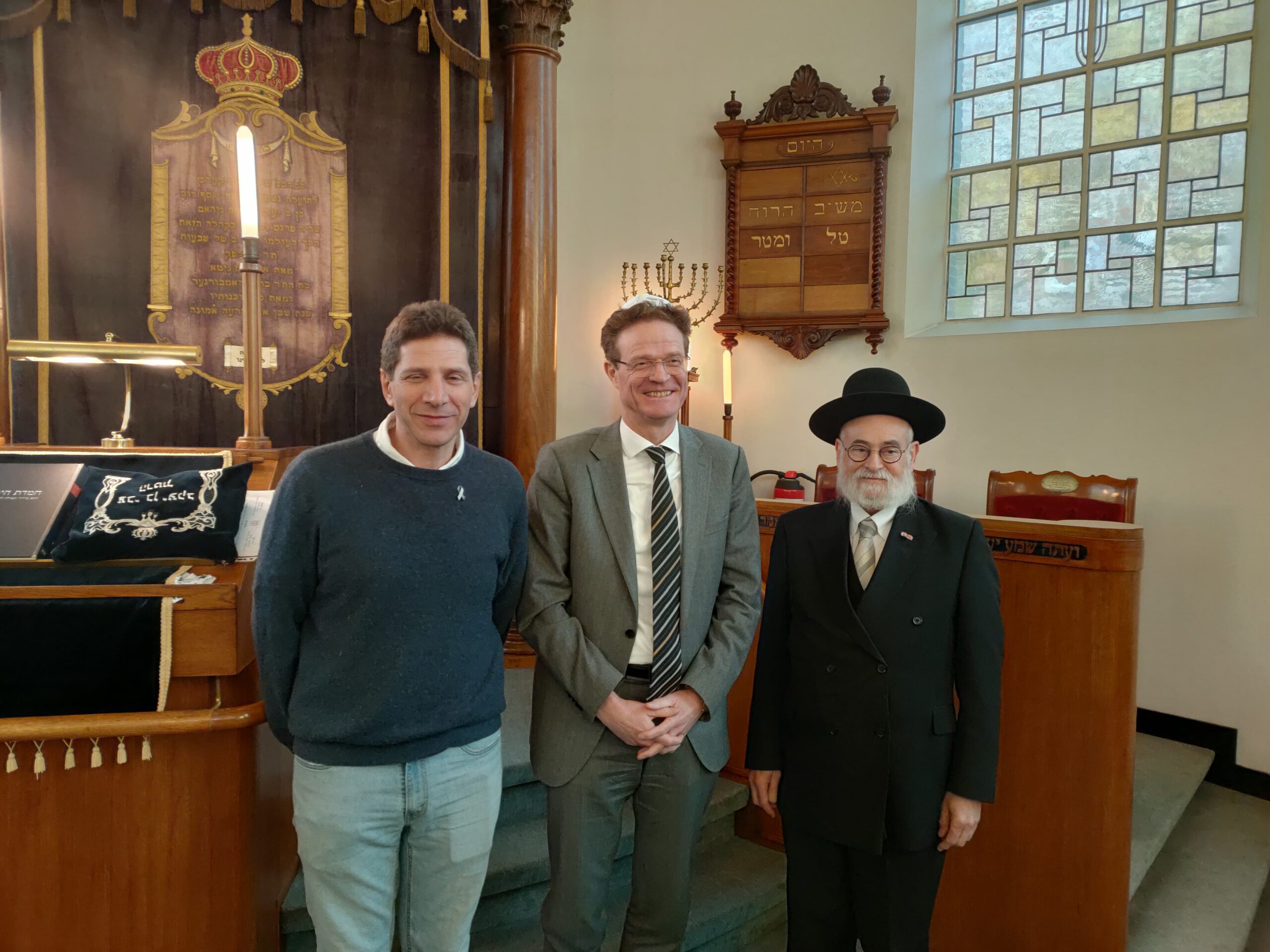 Blouma en ik hebben sjabbat jongstleden in Eindhoven mogen doorbrengen als gasten van de jarige rabbijn Simcha Steinberg en zijn rabbanit Rina Aidel. Uiteraard waren we ook de gasten van het Brabantse bestuur en van de leden. Het was geweldig te mogen aanschouwen hoe de Steinbergen een bijna dode kehilla hebben weten te redden. De sjoeldiensten, de maaltijden, de sfeer en de onderlinge verbondenheid: helemaal top! Ik had dan ook een bijzonder voldaan gevoel toen rabbijn Steinberg, geassisteerd door zijn jongste zoon, de sjabbaton afsloot met Hawdala. Dank voor jullie inzet en jullie gedrevenheid. Het was wijs van het bestuur om te investeren in een eigen rabbijn. Tot we na sjabbat thuis waren liep het al in de vroege uurtjes en doordat de klok een sprong vooruit had genomen en ik om 11 uur in Enschede verwacht werd voor de onthulling van een matsewa, kwam mijn nachtrust in de knel en zit ik nu met een niezende en hoestende verkoudheid.